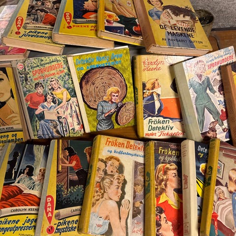 Samling med eldre håndarbeidsbøker og hefter innen strikking og hekling. Inneholder blant annet strikkebøker, hekleopplæring og mønsterhefter med ulike modeller til klær og tilbehør. Flere av heftene har illustrerte forsider og beskrivelser av teknikker og oppskrifter til både voksne og barn. Egner seg for den som er interessert i håndarbeid, historiske mønstre eller som samlerobjekter innen strikkebøker og heklelitteratur.
