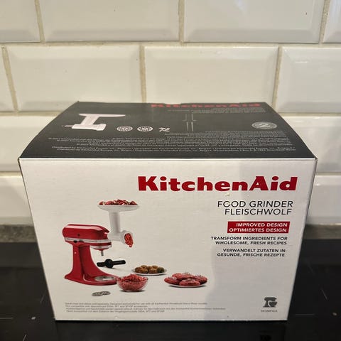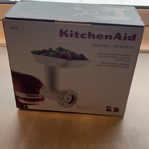 KitchenAid kjøttkvern / food grinder til KitchenAid kjøkkenmaskin. Har ikke kvittering, men aldri brukt. Kun åpnet esken