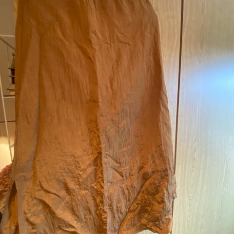 Skjørtet er halvvlangt, med strikk i livet, skjørtet er veldig behagelig å ha på, har vært mitt favorittskjørt,men nå blitt for stort