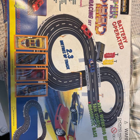 Komplett bilbane med 4 biler. Testet og alt fungerer som det skal.