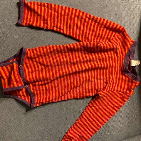 Nøstebarn body i ull. Kun vasket med nøstebarns eget vaskemiddel. Svak flekk/merke under hals.