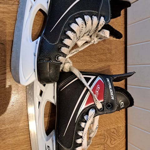 Cycab Toronto ishockeyskøyter i størrelse 44. Modellen er laget for ishockey og har klassisk svart, hvit og rød fargekombinasjon. Overdelen har snøring for justerbar passform og støtte rundt ankel. Skøytene leveres med stålskinne egnet for bruk på isbaner. Passer til ishockey og generell skøytebruk på is.