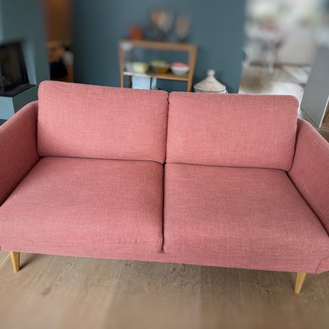 3-seter sofa i rosa fløyel inkl.puff