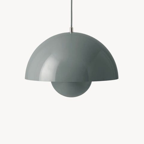 &Tradition Flowerpot pendellampe i orange farge, designet av Verner Panton. Lampen har den karakteristiske halvkuleformen med en mindre kuppel under, som skjermer lyskilden og gir et nedadrettet og blendingsfritt lys. Egner seg som belysning over bord, i stue, kjøkken eller andre oppholdsrom. Bruker standard lyspære (se sokkeltype på lampen/lyspæren).