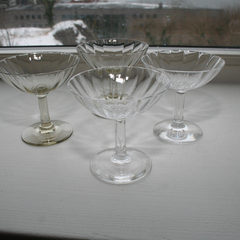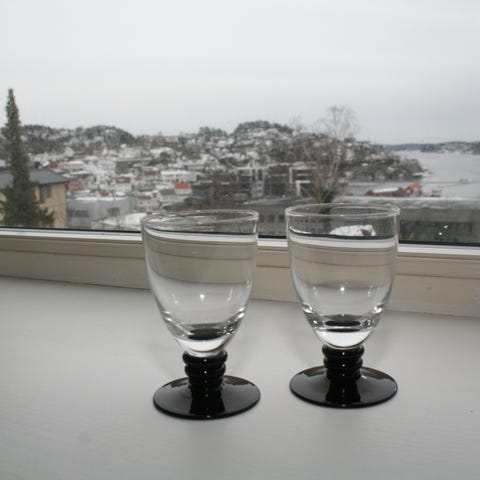 Høyde 9,2 cm. Diam 5,8 i toppen og 5,6 cm i foten. Er antakelig krystall for de er tunge of flotte. i god stand uten nagg. Vet dessverre opprinnelse. Selges kr. 100 samlet for begge
