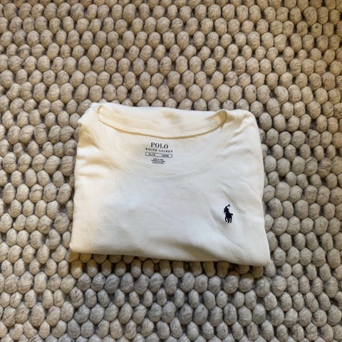 Polo Ralph Lauren T-skjorte for dame i størrelse XS. T-skjorten er hvit og laget av bomull. Den har V-hals og kort erm. Diskré logo brodert på brystet. Passer til hverdagsbruk alene eller under andre plagg.