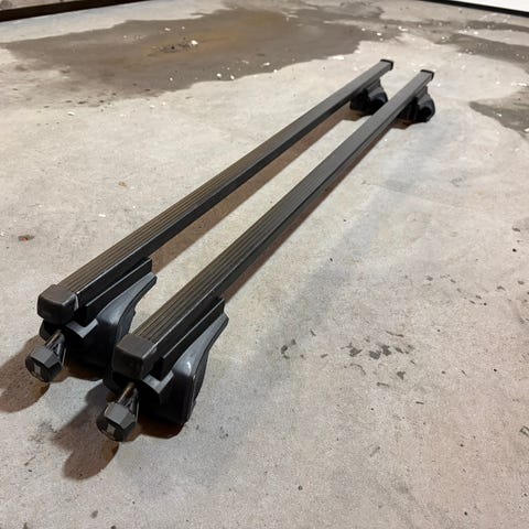 Pakken kommer med føtter og nøkler, men er godt brukt og kommer rett fra flere sesonger på taket på en Sharan så du må du regne med å vaske og smøre opp.