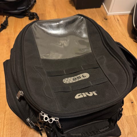 Selger; Garmin Zumo Gps 595, kr 3000, Shark S900 s hjelm str M med scala rider G9, kr 500. Ledningsett BMW navigator, kr 500. Givi V40 topp boks kr 500.