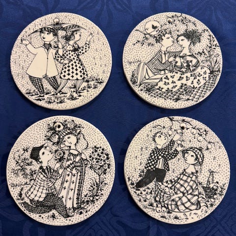 Selger 12stk originale Bjørn Wiinblad månedsplatter for alle 12måneder, dansk design. Som nye, ingen merker eller sprekker. Hull for oppheng.