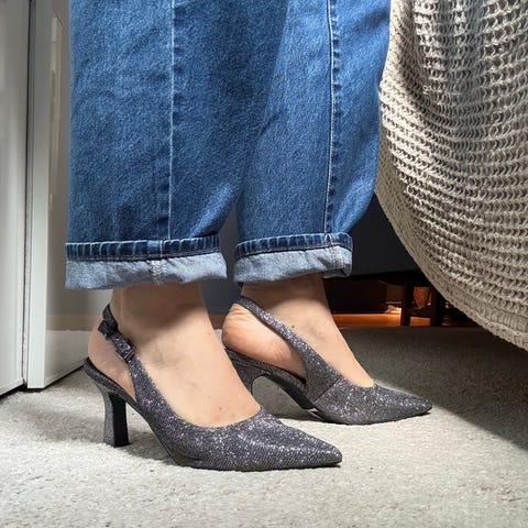 «Sofistikert slingback-stilett fra NOË Collection som forener kvalitet og komfort med et moderne og unikt uttrykk. Den er designet med spiss tå og slingback-hælrem med et lite elastikkstykke for bedre bevegelighet. Overdelen er laget av flott sateng med imitert skinnfôr. Den gode passformen og den myke innersålen bidrar til god komfort. Yttersålen har gummi under forfoten og en stabil 60 mm hæl med et lett rillet slitasjelag. Denne stiletten er det perfekte valget for å gi festantrekket en ekstra elegant touch.» kilde: skoringen.no