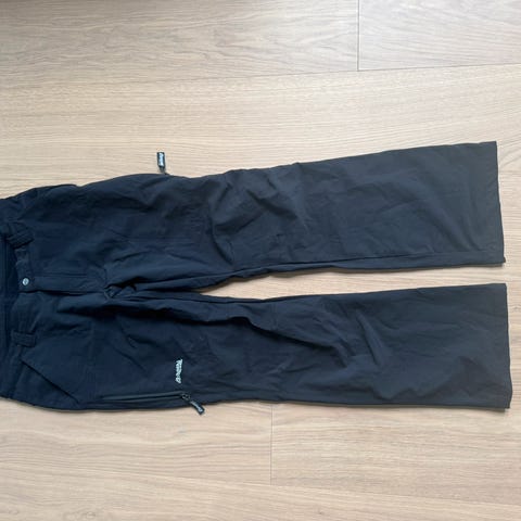 Vikafjell turbukse for herre i størrelse M. Buksen er svart og laget i polyester. Den har beltehemper og flere lommer med glidelås. Seler. Passer til slalom og andre snøaktiviteter. Se mål på bilder.