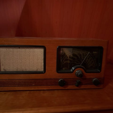 Dette er en ikonisk Radionette Forum rørradio, produsert i Norge på midten av 1950-tallet. Radioen er et praktfullt eksempel på skandinavisk elektronikkdesign fra etterkrigstiden, med et elegant trekabinett. Den fungerer både som et teknisk samlerobjekt og som et stilrent interiørelement i et moderne hjem.