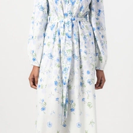 Vila sommerkjole for dame i størrelse 36. Kjolen er laget i polyester og har et flerfarget mønster i rosa, oransje og gule toner. Modellen har lange ermer med strikk og volangkant ved håndleddene, samt volangdetaljer langs utringningen. Kjolen har belte i samme stoff og mønster som kjolen. Passer som lett sommerkjole eller til hverdags- og penbruk i varmere vær.