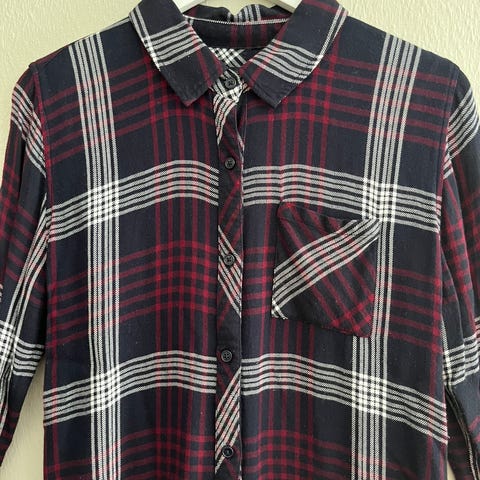 Klassisk skjorte i myk viskose har en avslappet passform og et tidløst rutemønster. Med brystlomme og knappelukking foran er den enkel å style – bruk den åpen over en T-skjorte eller lukket med bukser for en uformell hverdagsstil.
