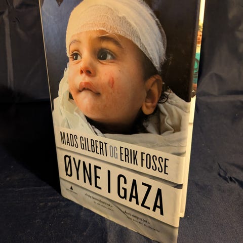 Øyne i Gaza bok på norsk. Sakprosabok skrevet av legene Mads Gilbert og Erik Fosse om deres erfaringer som medisinsk personell i Gaza. Innbundet utgave. Boken er på norsk bokmål og utgitt av Gyldendal forlag.