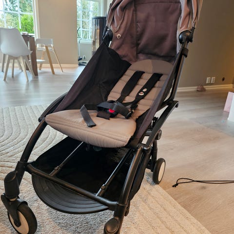 Babyzen Yoyo barnevogn i Taupe. Pent brukt , Ingen hull, bare en liten flekk (se bilde nr. 3), en liten rift på håndtaket, men den synes ikke helt. Alt i alt er vognen i veldig god stand og en veldig kompakt vogn for reiser. Følger med vogntrekk, barnevognski for snø og regntrekk :)