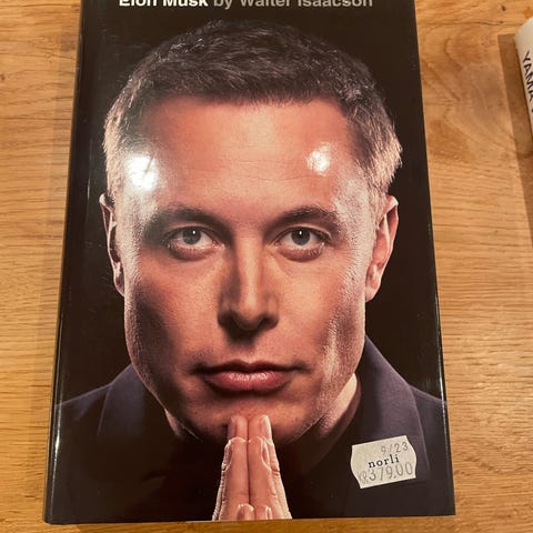 Cappelen Damm «Elon Musk» biografi bok på norsk, skrevet av Walter Isaacson. Pocketutgave med svart forside og bilde av Elon Musk. Boken skildrer livet og karrieren til Elon Musk, med fokus på teknologi, romfart og entreprenørskap. Egner seg for lesere som er interessert i biografier, innovasjon og moderne næringsliv.