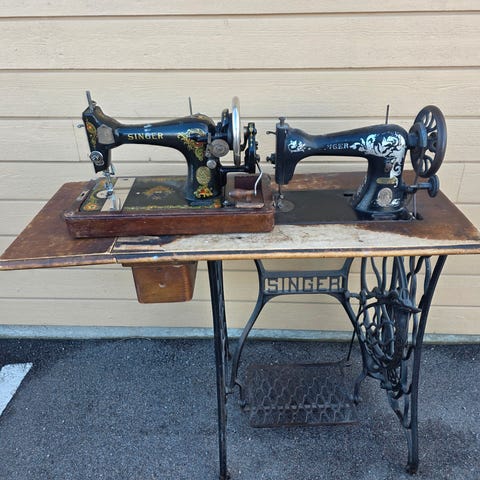 Gammel Singer symaskin fra tidlig 50 tallet som virker ( elektrisk / manuell ) med pedal. 800 kr