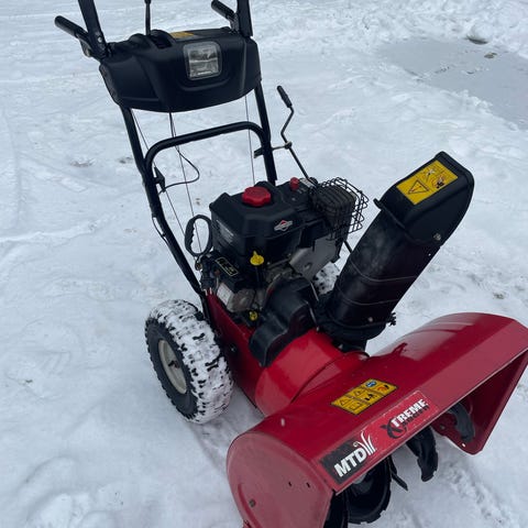 Maskinen har elektrisk start (E-Start) i tillegg til snorstart, og betjenes fra styrebøyle med flere hendler for drift og innmaterskrue. Egner seg for rydding av innkjørsler, gårdsplasser og gangveier på vinterføre. Farge rød med svarte detaljer. Kjettinger følger med.