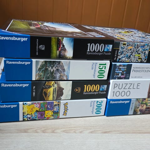 De fleste puslespillene er oppbevart i zip lock-poser.