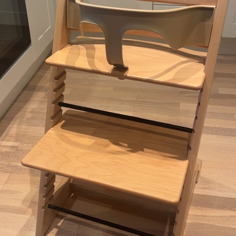 Egnet som spisebordstol for barn. Sete og fotbrett kan justeres i høyde ved hjelp av hull i stolbeina, slik at stolen kan tilpasses barnets størrelse. Passer inn ved de fleste standard spisebord og kan brukes i kjøkken eller spisestue.