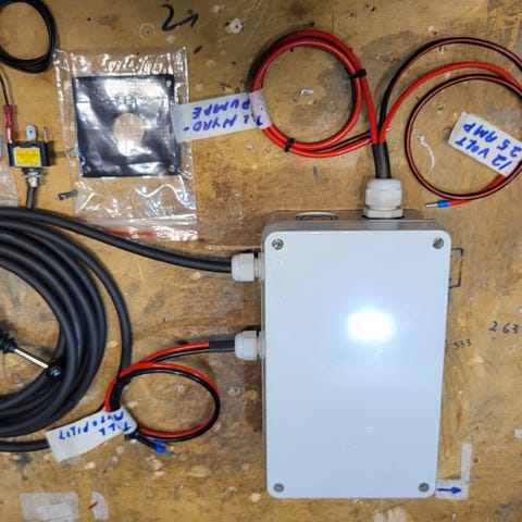 Pakken består av to Easee ladeenheter for fast montering på vegg, en sort ladekabel med ladekontakt for elbil, samt hvit tilførselskabel. I tillegg følger det med vernkomponenter (sikring/jordfeilvern) for montering i sikringsskap.