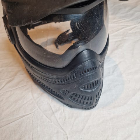 Solid facemask, nettingmaske med med skeleton paint. Beskytter både ører, skinn, nese og munn region. Pent brukt. Ingen feil eller mangler.