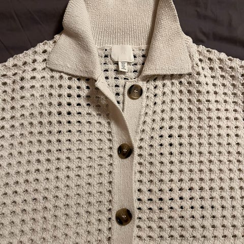 Stilig lys blå åpen golfjakke med sølv strikket inn,