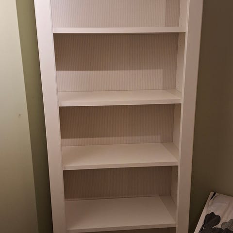 Hvit bokhylle i god stand. Noen bruksmerker men fungerer slik den skal.
