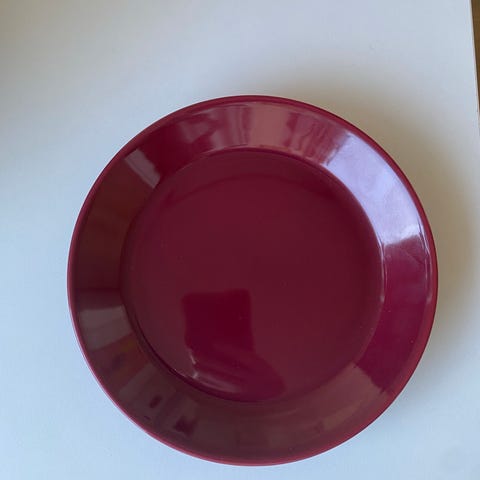 Rörstrand Höganäs Keramik tallerken i rød glasert keramikk. Tallerkenen har en diameter på ca. 20 cm, . Ifølge merking under er den både oppvaskmaskinsikker, mikrobølgesikker og ovnssikker. Passer til daglig bruk eller som del av et servise i samme serie.