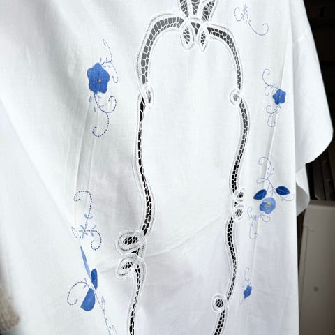 Vintage, håndbrodert lin-bomullsduk