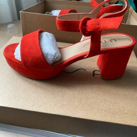 Nydelige røde sko fra Enzo Poli selges. Bred og god hæl,5 cm høye. Veldig god å ha på foten. En veldig flott og elegant selsksps-sko.