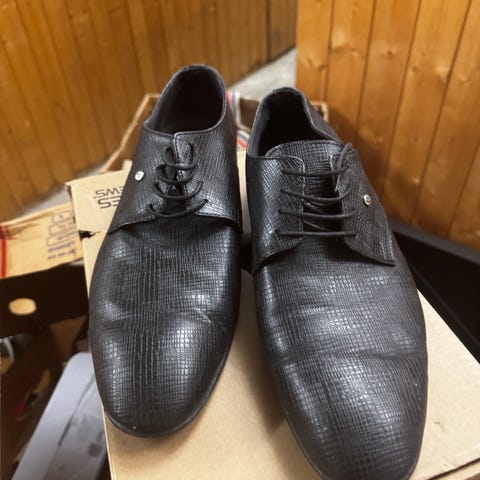 Godt brukte Calvin Klein pensko i skinn som trenger litt kjærlighet. Jeg er typisk 42-42.5 i skostrørrelse, og disse passer meg fint selv om det er størrelse 41. Det er synlige merker og slitasje på overlæret, spesielt foran på skoene, se bildene. Håper noen er interessert i å gi skoene nytt liv med litt kjærlighet.