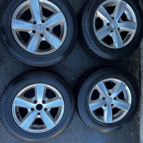 4 piggfrie vinter dekk med alu felg selges da bilen er skrotet.