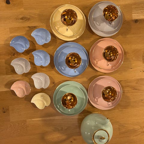 2 kopper helt sett med skål og tallerken 150,- pr stk