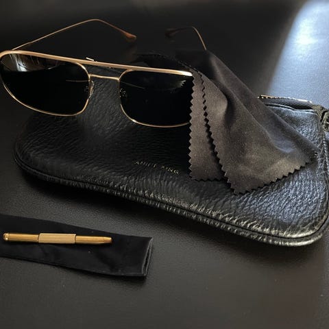 ...With a vintage feel, this round frame is built up of refined details from the visible screw at the hinge to flat metal temples. A laser logo is burnt subtly into one lens and fine metal insert feature in the frame....