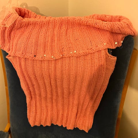 Litt usikker på hva materialet det er, kjøpte dette på en marknad før jul. Men føles mykt og varmt. Halsen er ubrukt og vottene har jeg brukt to ganger.