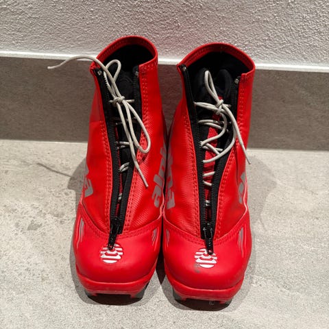 Alpina Racing Skate skisko i rød farge. Skiskoene har høy ankelstøtte med plasthelkappe og borrelåsstropp over vristen for bedre stabilitet. Glidelås i front beskytter lissesystemet. Sålen er utformet for skøyting og gir godt feste mot bindingene. Passer til langrenn/skøyting på ski med kompatible Rottefella bindinger.
