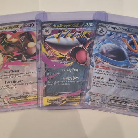 Alle kortene fremstår som nye. Lagt i sleeves rett fra åpnet pakker.