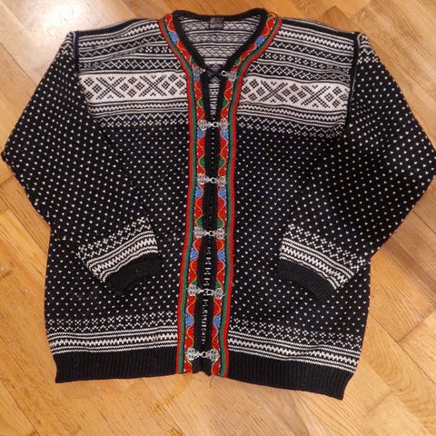Fin kofte i ull med tinnknapper, håndstrikket. Størrelse 40-42, passer for både dame og herre. Hentes i Stavanger og betales med Vipps.