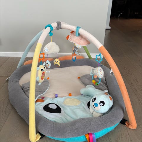 Yngri babygym med hengende leker.