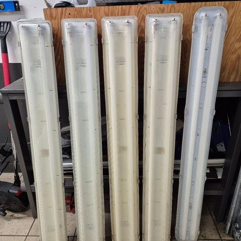 Taklamper gis bort til førstemann som henter. Noen få rør virker, men resten trenger nye rør.