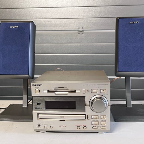 Sony DHC-MD373 stereo system med CD-spiller, MD-spiller og originale høyttalere.