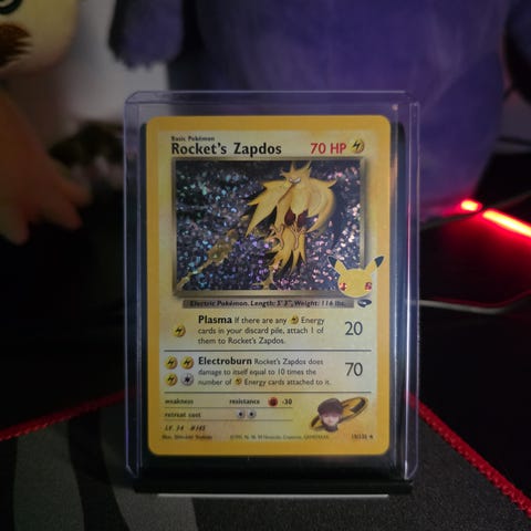 Rocket’s Zapdos 1st holo 15/132 fra 2000. Se bilder for tilstand, kan sende flere om ønskelig. Kan hentes eller sendes (28kr med posten eller fiksferdig), toploader inkludert i prisen.