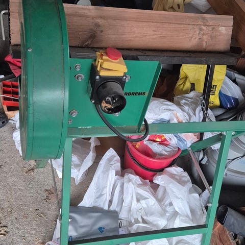 Park & Garden vedkløyver elektrisk i grønn farge. Maskinen står på stativ med hjul i den ene enden for enklere forflytning. Den har elektrisk motor montert på siden og betjeningspanel med sikkerhetsmerking. Egnet til kløyving av vedkubber i mindre og mellomstor størrelse til privat bruk. Strømtilkobling via vanlig strømkabel.