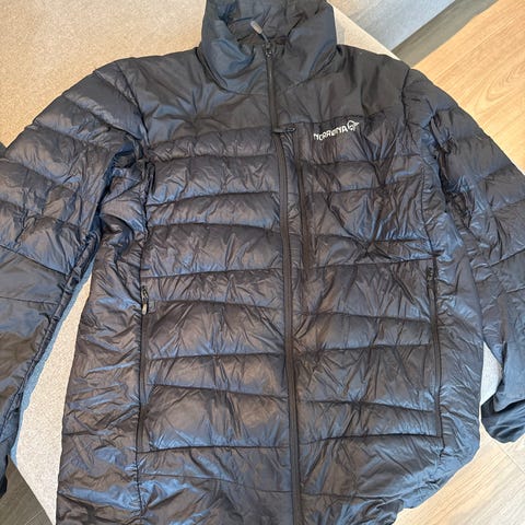 Norrøna Oslo Lightweight Down850 dunjakke for herre i størrelse XL. Jakken er svart og fylt med dun, med lett vattering og horisontale sømmer som holder dunet jevnt fordelt. Modellen er en lett dunjakke som egner seg som ytterjakke i kjølig vær eller som isolerende mellomlag under en skalljakke.