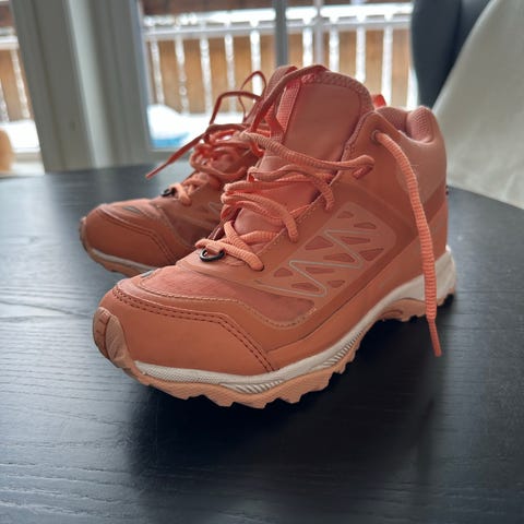 Viking joggesko for barn i størrelse 34, unisex. Joggeskoene har borrelås eller snøring avhengig av modell, og er egnet som hverdagssko eller til aktivitet. Flere par i ulike farger vises på bildene. Skoene er i brukts stand, med synlig slitasje spesielt på noen av parene. Passer til barn som trenger joggesko i størrelse 34.