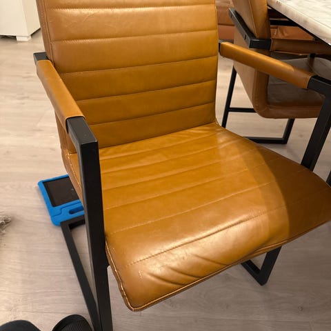 Fire stk. Michelle spisestuestoler fra Bohus selges for 250kr pr. stk. Stolene ble kjøpt i 2018 for 800kr pr stk, og har vært fint brukt i et barnefritt hjem. De er i brunt, «semsket» stoff og smijernsbein. Jeg har vært veldig fornøyd med dem og synes de er både pene og gode å sitte i, men ved inngåelse av samboerskap viste det seg at de er for høye for det nye spisebordet 🥲 Jeg håper derfor de kan få være til glede i et annet hjem.