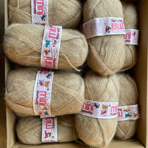 7 nøster Sandnes garn – mohairblanding – varm karamellfarge
