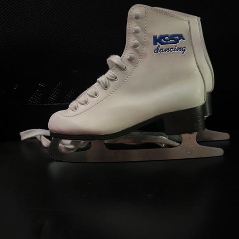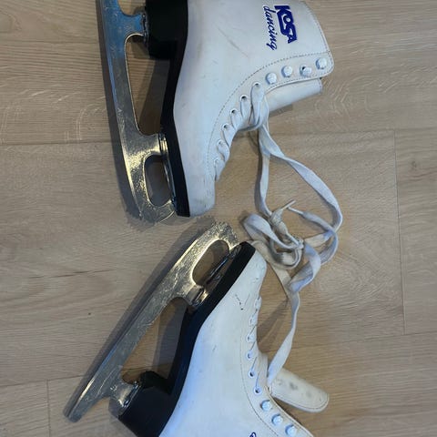 Kosa Dancing skøyter for barn i størrelse 30. Klassiske hvite skøyter med snøring og stålklinga. Overdel i syntetisk materiale og mykt, fôret innside for økt komfort og varme. Egner seg til bruk på isbaner og skøytebaner til lek og enkel kunstløp-/danselignende skøyting.